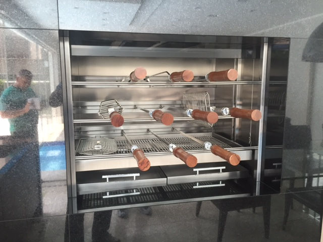Outra característica deste sistema é a limpeza, pois não temos a utilização de carvão e também não haverá sujeira resultante do assamento das carnes, os sumos e as gorduras caem numa forma com uma lâmina de água, o que impede que queimem e que produzam fumaça.